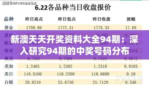在对新澳天天开奖94期的号码进行统计分析时,我们首先要关注的基本数据是各个号码出现的频率。通过对往期数据的收集和整理,我们可以得出一系列相关的统计图表和报告。