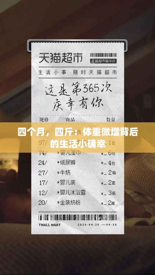 四个月,四斤,这个小小的体重变化,让我学会了接受并拥抱生活中的变化。体重并不是衡量一个人价值的唯一标准,健康和快乐才是最重要的。与其一味追求完美的身材,不如学会享受生活中的每一个小确幸。