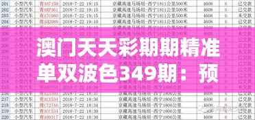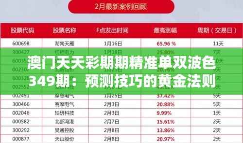 在澳门,天天彩成为了当下最流行的彩票之一,吸引着无数民众加入其中,希望能够通过自己的计算和策略,实现一夜暴富的梦想。而精准预测单双波色的结果则是实现这个梦想的关键。在这里,我们将分享给读者澳门天天彩期期精准单双波色349期的几点预测技巧的黄金法则,帮助您掌握先机,迈向成功。