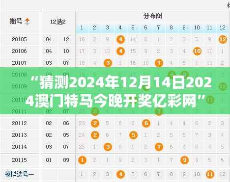 人们为何对幸运数字如此痴迷?仿佛每一场赛事的开奖结果都关乎着生活上的重大转机。让我们来深入探究今晚"猜测2024年12月14日2024澳门特马今晚开奖亿彩网"——的数字背后那迷人的秘密。数字并非偶然,它背后蕴含着统计学、概率论和精算学的逻辑。
