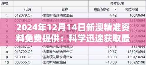 2024年12月14日,澳门政府发布了一项全新的政策——“新澳精准资料免费提供:科学迅速获取最新资讯”,旨在通过科学的手段迅速为公众提供免费而精准的信息。这一政策不仅体现了澳门政府对信息透明度的高度重视,也彰显了其以人民为中心的治理理念。以下是对此项政策的详细解读,希望能帮助公众更好地理解和利用这一宝贵的资源。