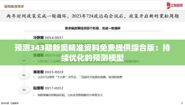 在澳门的政策与经济环境中,准确而迅速的商业信息对市场发展至关重要。本篇文章旨在探讨“预测343期新奥精准资料免费提供综合版:持续优化的预测模型”,为读者提供一个全面的视角,深入了解澳门地区最新商业预测工具的先进性与其优化路径。通过深入分析这一预测模型的机制、功能和效用,我们期望提升读者的市场预测能力,促进更高效的政策制定与执行。