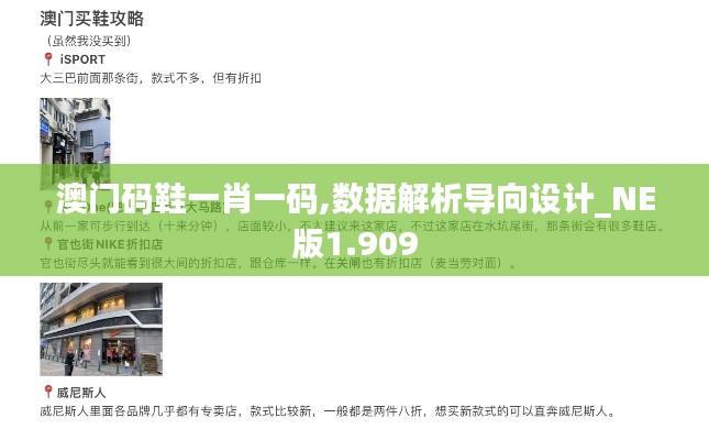 澳门码鞋一肖一码,数据解析导向设计_NE版1.909是澳门政府为促进澳门鞋业发展,提高澳门鞋类产品在国内外市场的竞争力,而推出的一系列政策措施。该政策文件涵盖了澳门码鞋一肖一码的标准制定、数据解析、导向设计等多个方面,旨在为澳门鞋业提供一个全面、系统的发展指导。本文将对澳门码鞋一肖一码,数据解析导向设计_NE版1.909进行详细解读,以帮助读者更好地了解和把握澳门鞋业的发展方向。