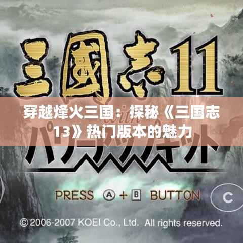在历史的长河中,三国时期无疑是最为波澜壮阔、英雄辈出的一段。无数豪杰在这片土地上谱写了一曲曲壮丽的史诗。而《三国志13》,作为光荣特库摩公司旗下的经典策略游戏,成功地将这段历史搬上了电子屏幕,让玩家们得以亲身扮演那些耳熟能详的历史人物,体验一把指点江山的快感。今天,我们就来深入探讨这款游戏的热门版本,看看它究竟有何魅力,能够吸引无数玩家为之倾倒。