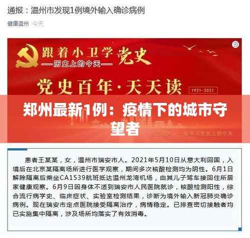 郑州最新1例新冠肺炎确诊病例的出现,再次提醒我们,疫情防控形势依然严峻。在这关键时刻,我们要保持警惕,做好个人防护,共同守护这座城市的平安。相信在党和政府的领导下,在全国人民的共同努力下,我们一定能够战胜疫情,迎来美好的明天。
