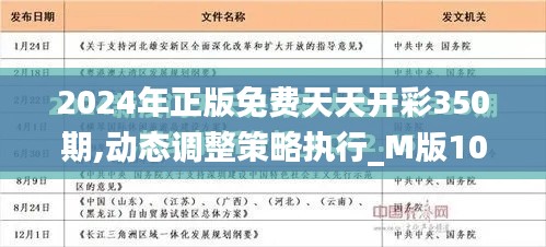 综上所述,“2024年正版免费天天开彩350期,动态调整策略执行_M版10.617”这一政策文件,不仅体现了澳门政府在新时代下的经济理念和社会责任,也彰显了其在机构改革和社会政策上的创新和进取。我们期待这一政策文件能够为澳门带来更加美好的未来,并持续启发我们对于政策、经济和社会发展的新思考。