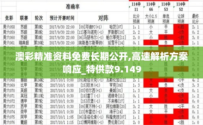 在澳门这个多元文化交融的都市,政策文件的发布不仅要传达清晰的信息,还要确保广大市民能够及时、准确地获取相关资讯。今天,我们特别发布关于“澳彩精准资料免费长期公开,高速解析方案响应_特供款9.149”的政策文件,旨在通过提供高速度、高精度的解决方案,进一步促进政策透明化,加强市民对于政策的理解和信任。