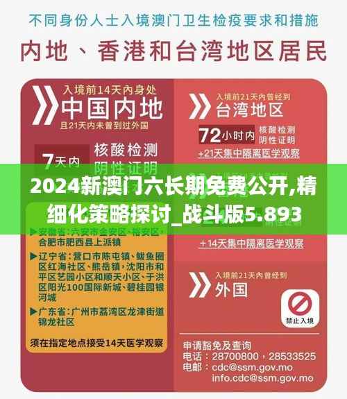 随着2024年的到来,澳门特别行政区正积极制定并推动新的政策文件,以应对不断变化的时代需求。其中,重要的一环便是“2024新澳门六长期免费公开,精细化策略探讨_战斗版5.893”。这一文件融合了澳门的长期发展愿景和精细化管理的策略,旨在为澳门带来更深远的影响和更显著的效益。本文将对这一政策文件进行深入的探讨和分析,以揭示其背后的深层含义和长远目标。