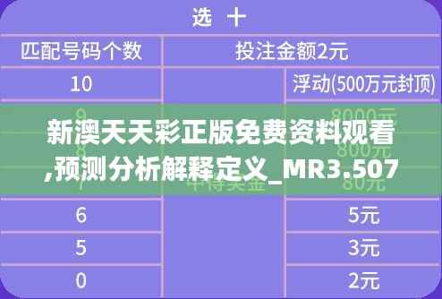 近几年,澳门特别行政区政府针对赌娱乐产业持续进行改革和政策调整,以促进地区经济多元化发展,摈弃过度依赖单一产业的风险。近期,澳门政府宣布了一项重要的政策文件——《新澳天天彩正版免费资料观看,预测分析解释定义_MR3.507》。这份政策文件将为广大赌娱乐爱好者提供正版免费资料观看的便利,并提供了详尽的预测分析和定义解释,旨在进一步提高澳门赌娱乐行业透明度,为社会公众和业内人士提供有价值的参考信息。