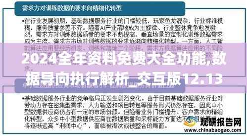 “数据导向执行解析”是“2024全年资料免费大全功能”的核心优势之一。该功能利用先进的数据分析技术,为用户提供更加智能和个性化的服务。通过机器学习和自然语言处理技术,平台能够理解用户的查询意图,并提供最相关的信息。