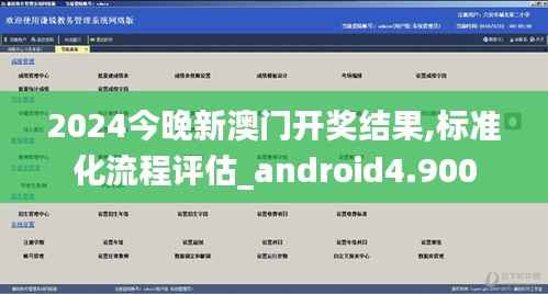 您好,尊敬的澳门政策文件读者。今天,我们着重讨论的是在严谨监管下最新发展的2024年澳门彩票业务——“新澳门”的开奖结果及对相关标准化流程的评估。其中"2024今晚新澳门开奖结果"与"标准化流程评估_android4.900"将是本次讨论的两个核心主题。