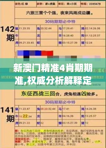 澳门是中国的一个重要特别行政区,与其独特的地理位置和经济特点相适应,其政策也具有独特性。“新澳门精准4肖期期准”是指澳门政府最新的政策,这些政策精准地针对四个主要领域进行优化调整,以期达到期期准确的效果。这种精确性和连续性是澳门政府在政策执行上的一大特色。