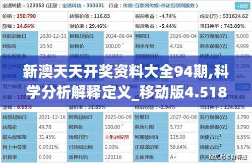 随着澳门彩票文化的不断发展和成熟,越来越多的彩民朋友们对于获得及时、准确的开奖信息和分析资料充满期待。在这样的背景下,新澳天天开奖资料大全94期,科学分析解释定义_移动版4.518应运而生。本文旨在向读者详细介绍新澳天天开奖资料大全94期的相关内容,涵盖科学分析、解释定义以及其在移动版4.518中的应用,为澳门彩民提供全方位的信息服务。