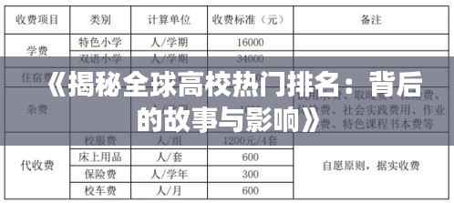 转载请注明来自成都华通顺物流有限公司,本文标题:《《揭秘全球高校热门排名:背后的故事与影响》》