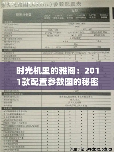 在汽车工业的长河中,每一款车型都承载着一段独特的历史。2011款雅阁,作为本田家族中的经典之作,不仅在当时引领了中级车市场的潮流,更在岁月的洗礼中,成为了无数车迷心中的经典。今天,我们将通过一张张配置参数图,揭开这款车的神秘面纱,重温那段激情燃烧的岁月。